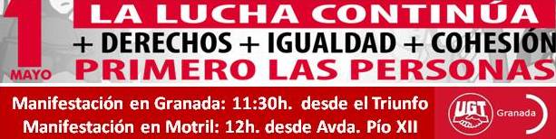 UGT y CCOO llaman a salir a la calle el 1 de Mayo en Granada a las 11:30 desde el Triunfo , para exigir al nuevo Gobierno que se ocupe de las personas.