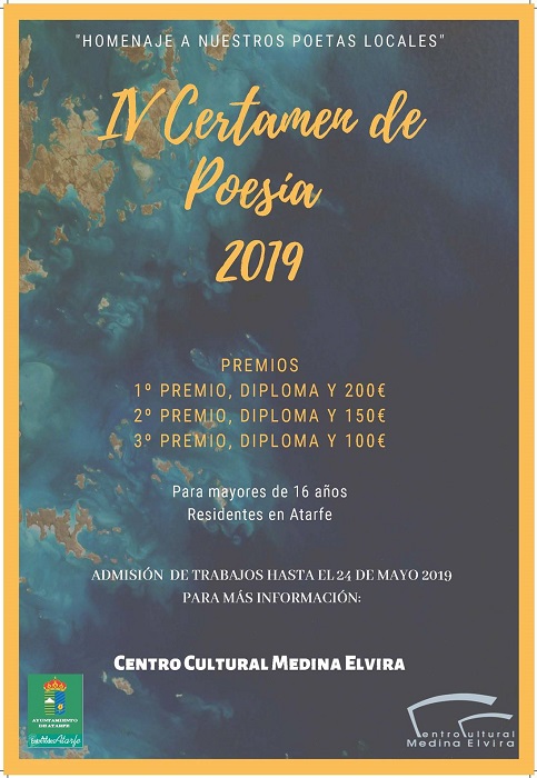 La Concejalía de Cultura organiza entre los vecinos de Atarfe la tercera edición del concurso de poesía que contempla premios en metálico. El plazo de presentación acaba el 24 de mayo
