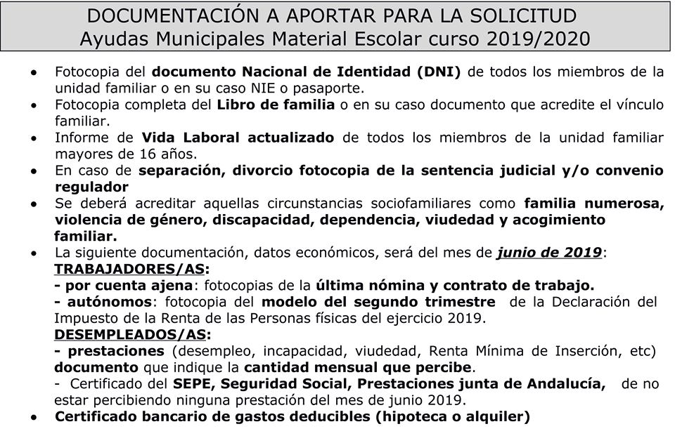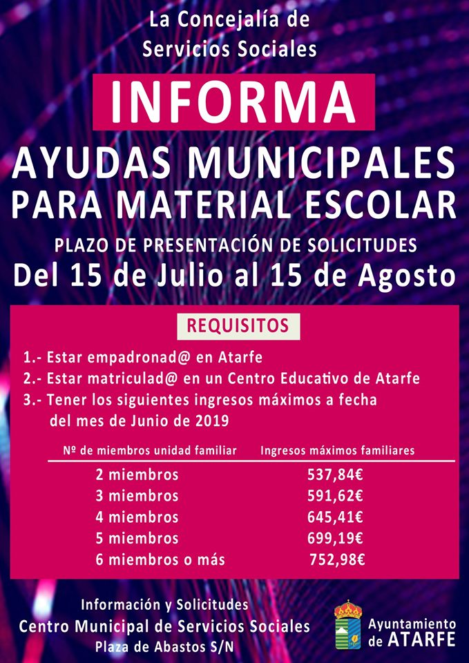 ATARFE: EL AYUNTAMIENTO CONVOCA AYUDAS PARA MATERIAL ESCOLAR DEL CURSO 2019/20