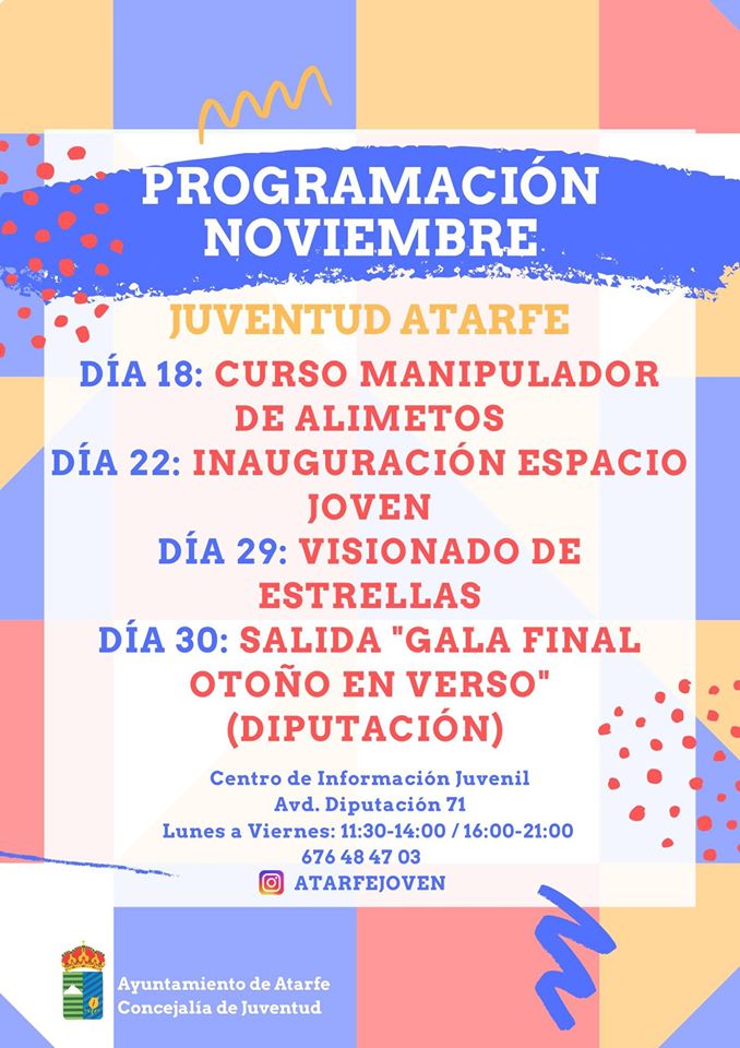 ATARFE: ACTIVIDADES DEL ÁREA DE JUVENTUD PARA EL MES DE NOVIEMBRE