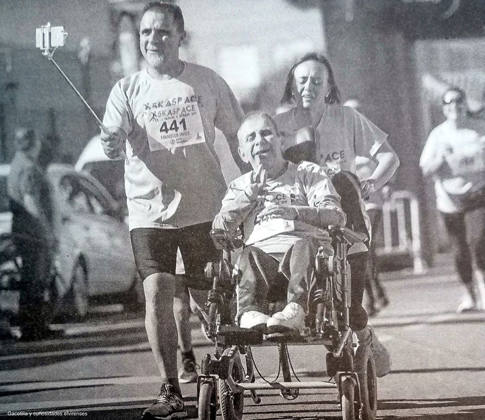 Pues bien, el pasado 7 de octubre me llevé una grata sorpresa cuando en las hojas del tabloide me topé con la fotografía que ilustra la gacetilla de hoy. Eran mis primos, participando en la VI Carrera-Marcha solidaria de Aspace. La imagen me hizo dibujar una gran sonrisa en mi rostro y gritar fuerte: ole.