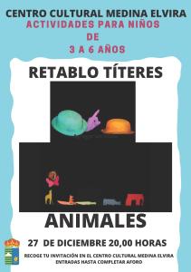 «ANIMALES» EL RETABLO DE TITERES DIA 27 A LAS 20 HORAS EN EL CENTRO CULTURAL MEDINA ELVIRA
