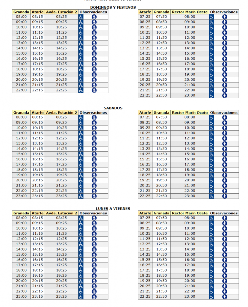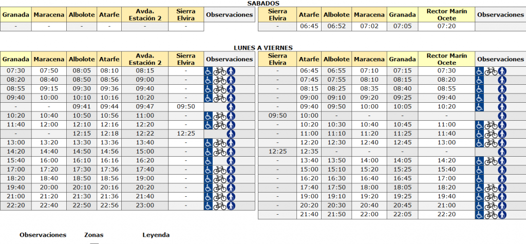 Puedes encontrar la información oficial sobre horarios del Consorcio de Transporte Metropolitano de Granada accediendo a los siguientes enlaces: