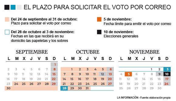 Los residentes españoles que no puedan acudir a las urnas el próximo 10 de noviembre tienen hasta el próximo 31 de octubre para solicitar el voto por correo si quieren participar en las nuevas elecciones generales.