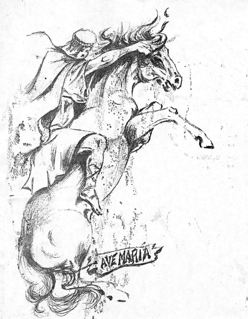 Dibujo de D. José Osuna del moro Tarfe con la leyenda del Ave María.