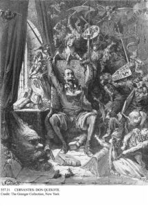 Don Quijote rodeado de sus pesadillas. Grabado de Gustave Doré.