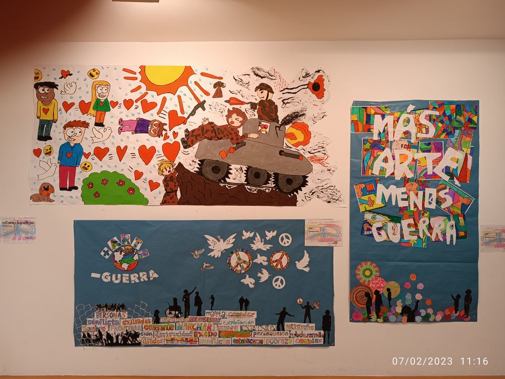Cada centro educativo ha aportado una escultura, una pintura y una fotografía, que junto a sus explicaciones, difunden al visitante sus más sinceros sentimientos de unión entre pueblos