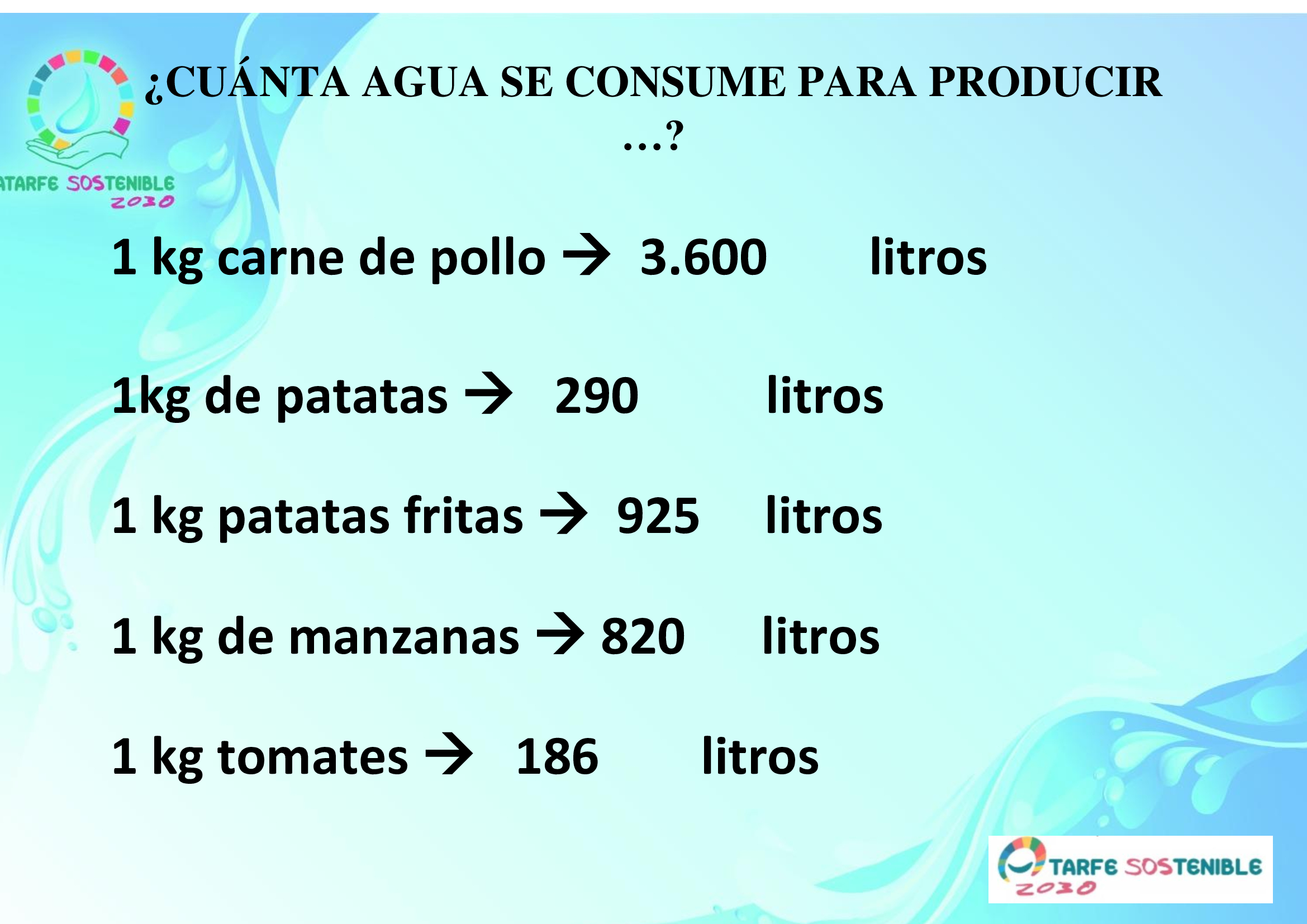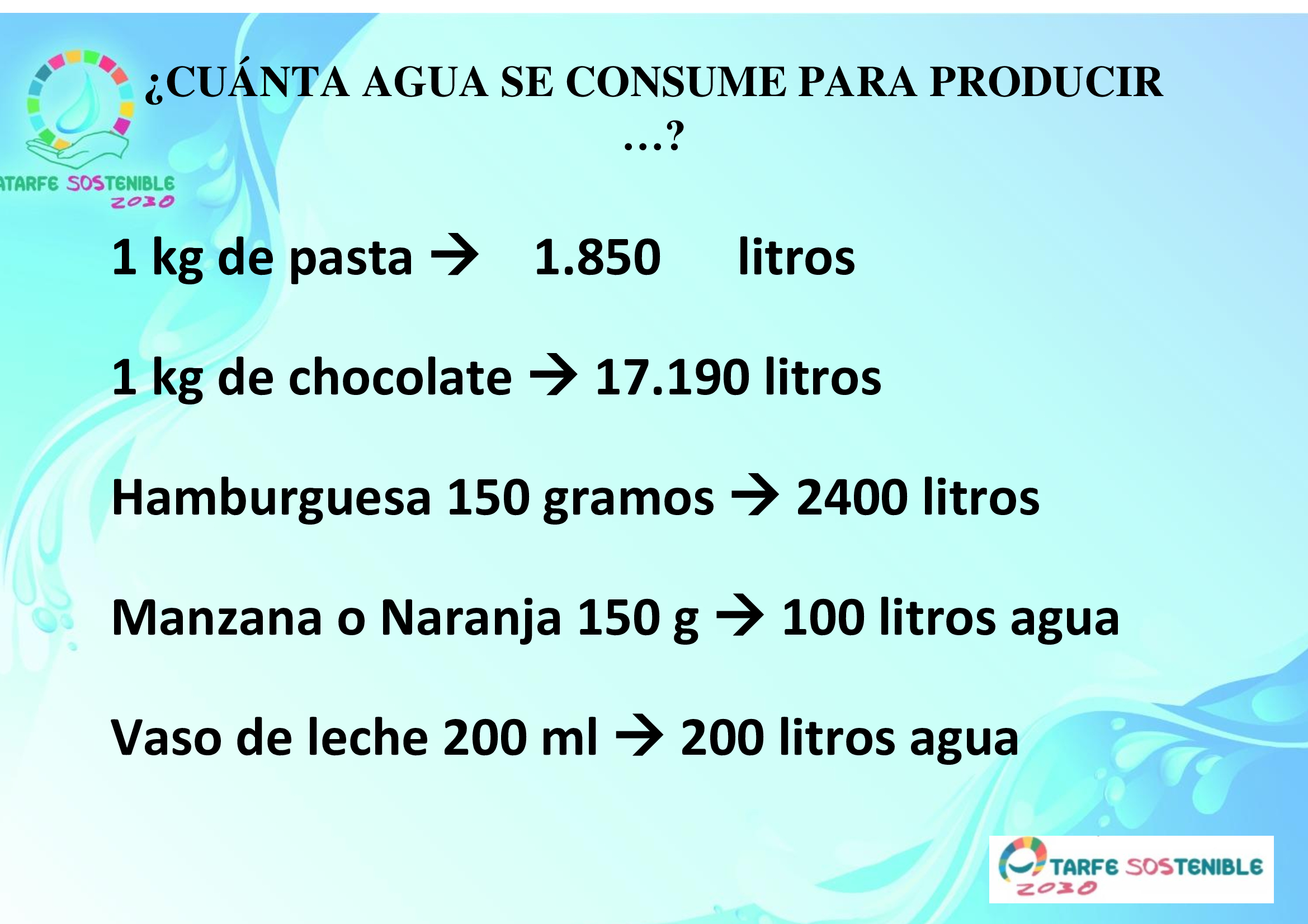 Estas infografías nos las presenta Atarfe sostenible para tomar conciencia del consumo de agua DE LA HUELLA HÍDRICA que necesitamos para producir nuestra comida. ¿Es para reflexionar?