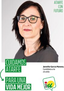 1. Jennifer García Moreno fue elegida por unanimidad en nuestra asamblea como candidata a las elecciones municipales. Fue concejala de nuestro Ayuntamiento (1999–2007) pero representa la renovación de nuestra coalición en estas elecciones. Militante del PCE desde muy joven y con una gran convicción política vivida en el seno de su familia. Ha sido secretaria política del PCE hasta que fue elegida Coordinadora local de Izquierda Unida.