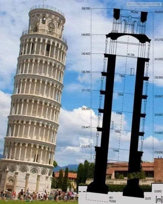 Hablamos de una torre de 14.500 toneladas de peso construida sobre cimientos de 3 m de profundidad apoyados en suelo de arena y limo. Me imagino que estudios geotécnicos previos a la construcción en la época, los justos.