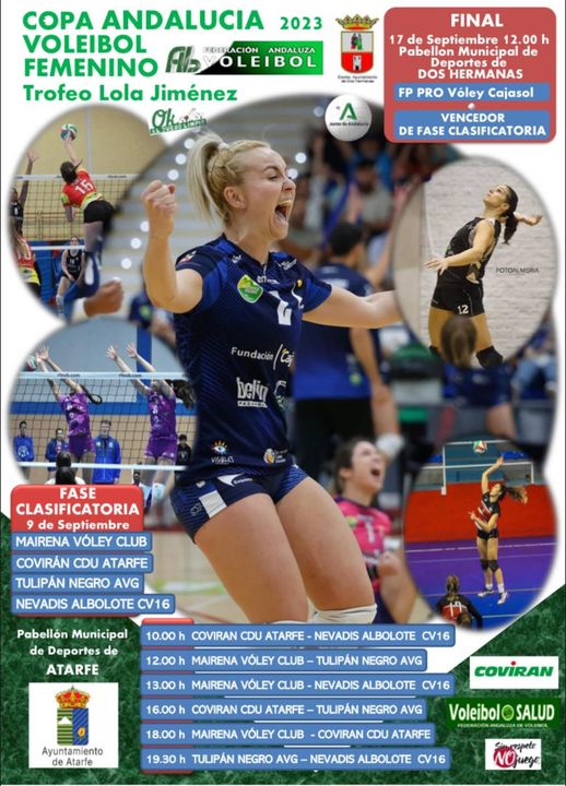 Mañana Sábado, 9 de Septiembre, Atarfe se prepara para vivir una emocionante jornada llena de vóley femenino de alto nivel. La Copa de Andalucía de Voleibol Femenino 2023 llega a nuestro Pabellón de Deportes.